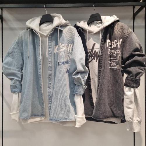 지고다그 남성 봄 가을 워싱 데님 후드티 루즈핏 캐주얼 데일리룩 GJX4203