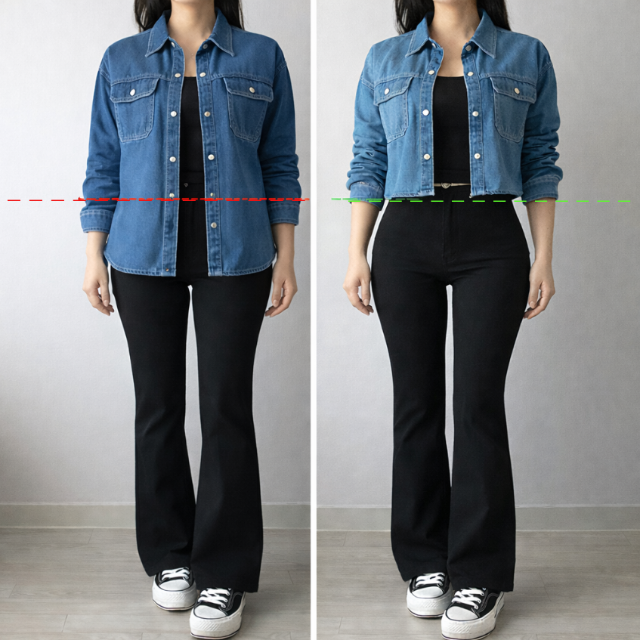 크롭한 기장으로 다리가 더 길어보이는 데님 셔츠 자켓 한눈에 비교해보세요
