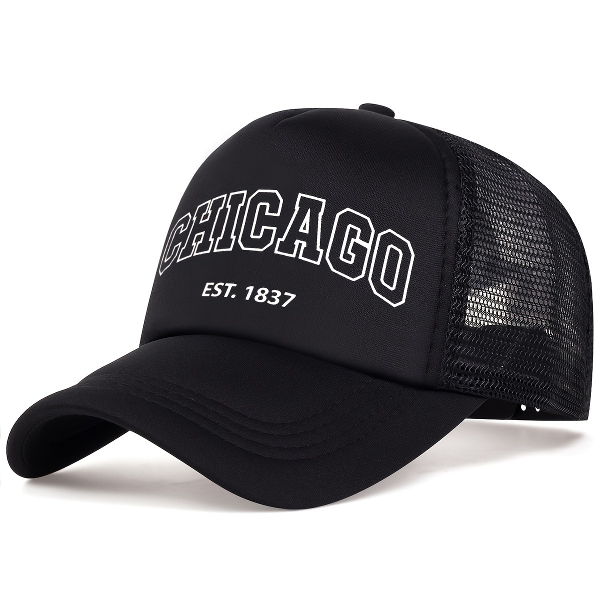 TEMU 여성용 시카고 1837 프린트 퀵 드라이 모자, 통기성이 좋으며 야외 여름 활동에 적합하며 남성용 햇빛 가리개 모자로도 사용 가능, 힙합 스타일 캡으로 스타일링 가능|스냅백