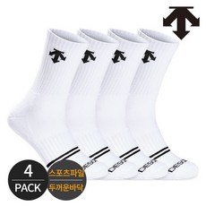 데상트 남성용 스포츠 파일 앞투선 중목양말, 화이트, 4세트