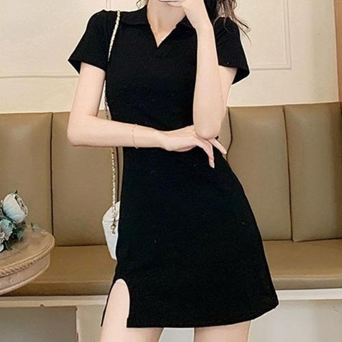 [오너클랜]인기상품 브이넥 카라 미니 원피스 밑단 트임 데이트룩 [WFFT5DH_250919]