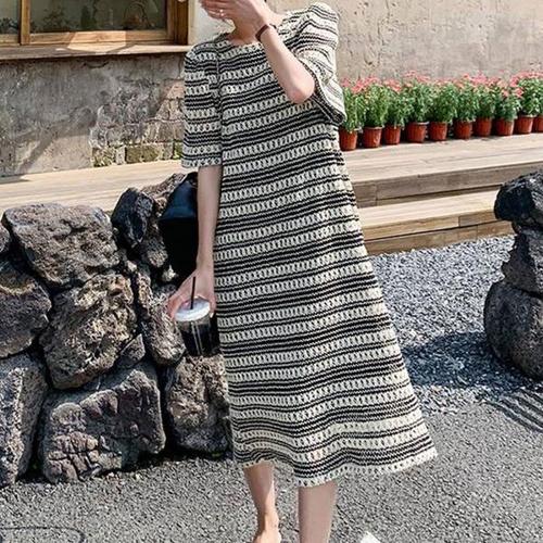 [오너클랜]인기상품 꼬임 스트라이프 니트원피스 얇은 롱 원피스 데이트룩 [WCB857C_250919]