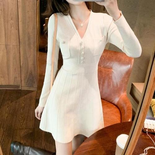 [오너클랜]인기상품 여성 여친룩 데이트룩 브이넥 니트 원피스 [WFFMZHM_250918]