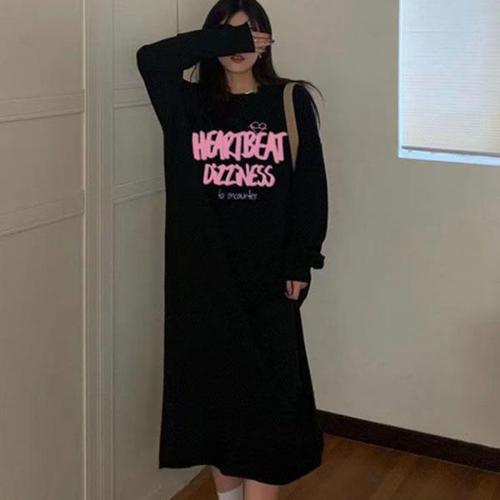 [오너클랜]인기상품 레터링 포인트 기모 안감 롱 원피스 홈웨어 데일리룩 [WD442BC_250916]