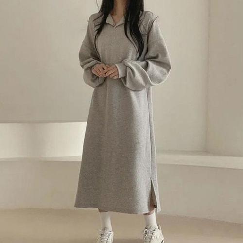 [오너클랜]인기상품 여성 두툼 기모 후드 루즈핏 데일리 롱 원피스 [WD682DE_250916]