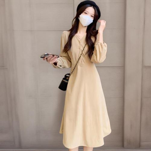 [미라클세븐]여성 브이넥 코듀로이 롱원피스 데일리룩