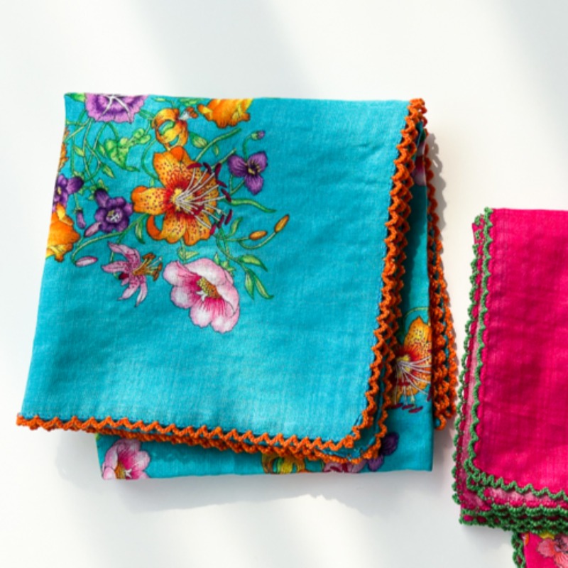 플라워패턴 정사각형 가재나염 이중 손수건 1매 순면손수건 여성손수건 데일리손수건