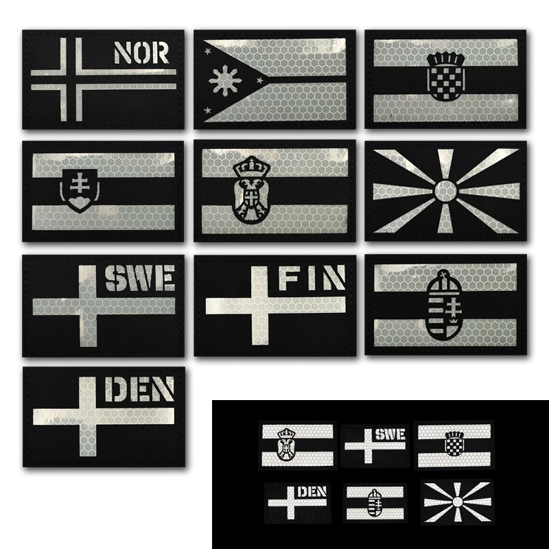 레이저 커팅 반사 소재 국가별 흑백 깃발 팔찌 배낭 패치 배지 식별 씰
