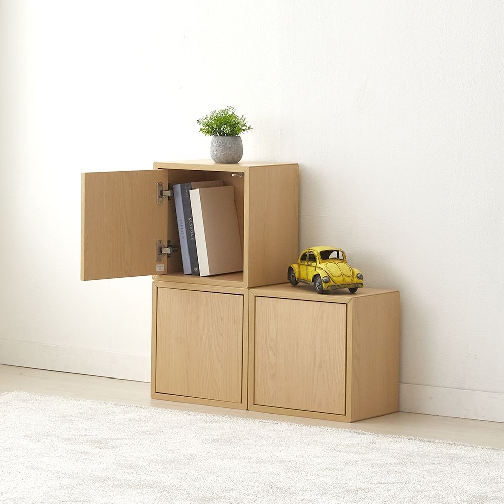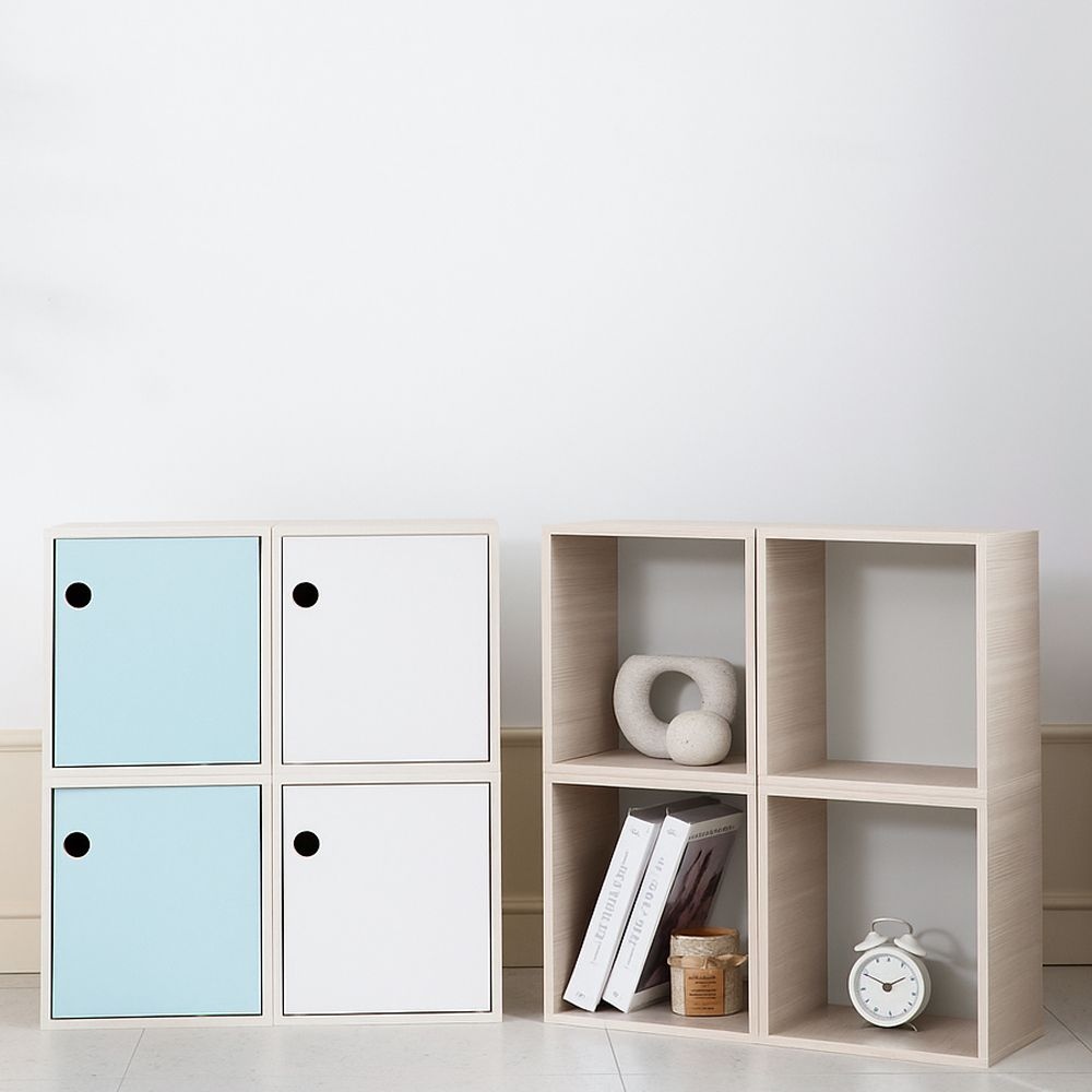 1단 큐빅 도어형 공간박스 책장 우드 리빙박스 4colors
