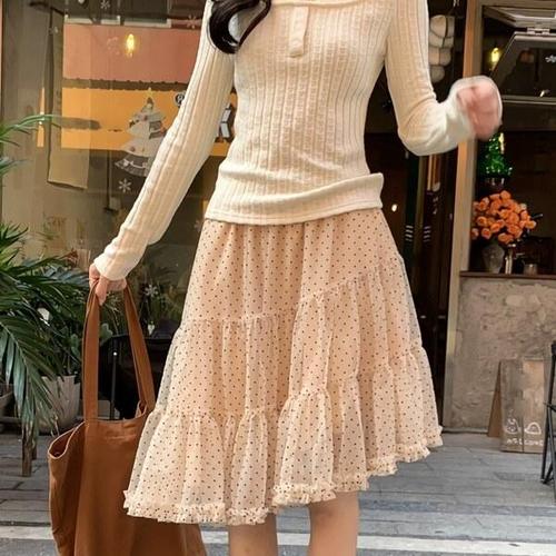 [옷자락]여성 페미닌 데일리 시스루 도트 롱스커트