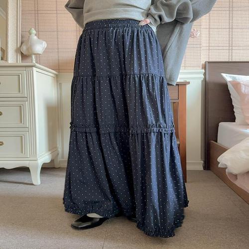 [미라클세븐]여성용 편안한 일상 도트 패턴 롱스커트