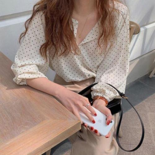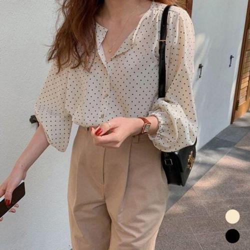 메이킹유 [인기상품/핏보장] 러블리 도트 쉬폰 퍼프 긴팔 블라우스 레이어드 청순 데일리 데이트룩 여리핏 WA2011도트블라우스