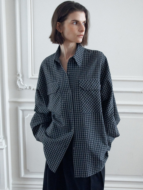 [하시에] 오버사이즈 돌먼 슬리브 체크 셔츠