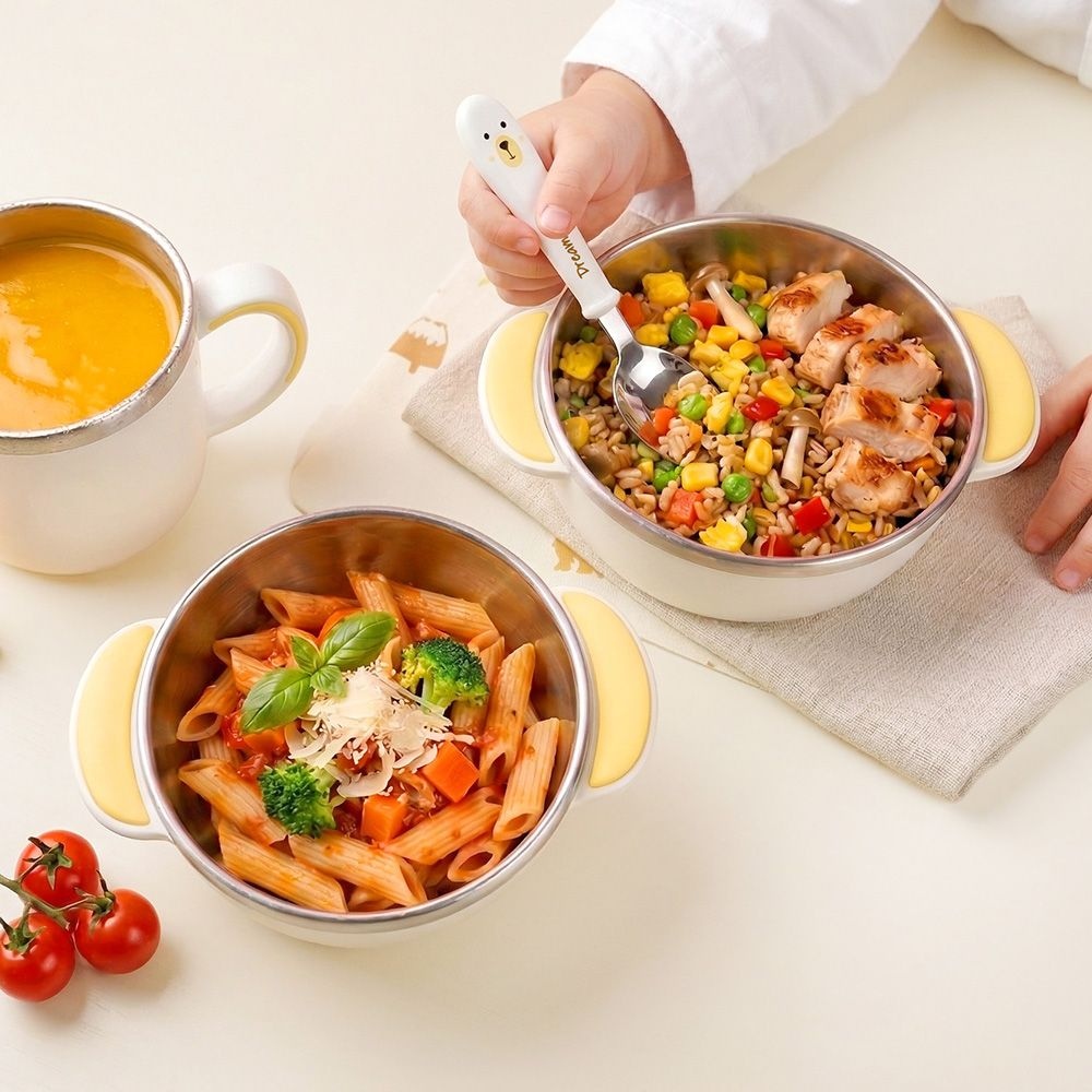 논슬립 유아동 스텐 공기 대접세트 돌아기 이유식용기 밥공기 출산선물 자기주도 간식볼 접시