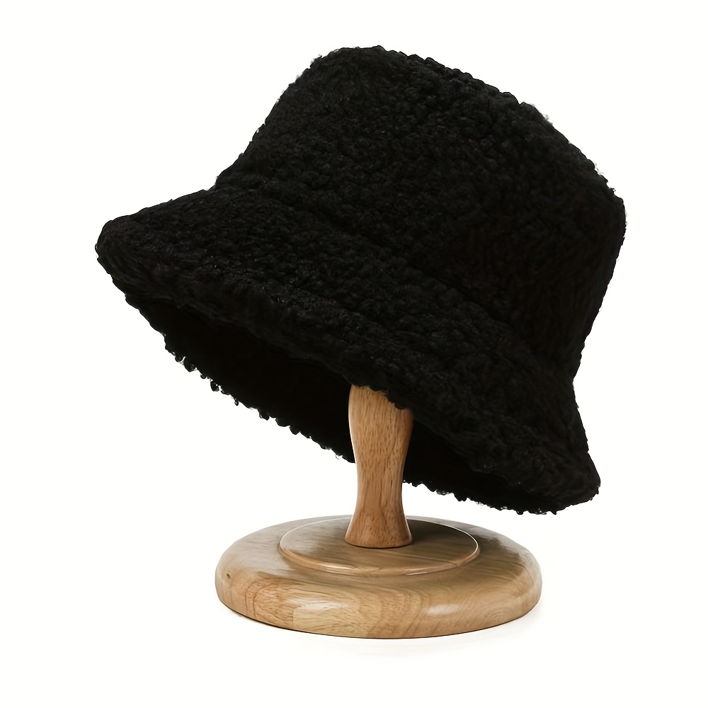 TEMU 1 여성용 모자, 가을 겨울 유럽 미국 패션 따뜻한 솔리드 컬러 두꺼운 플러시 버킷햇