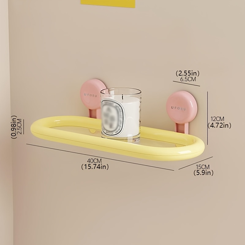 TEMU 모던 화이트&클리어 아크릴 플로팅 선반 - 드릴 필요 없는 접착식 벽걸이 욕실 수납 선반, 거울 간격 디자인, 공간 절약형 레이어드 캐비닛 디바이더, 화장품, 샤워용품 정리 - 쉬운 조립, 다목적 사용, 플로팅 선반