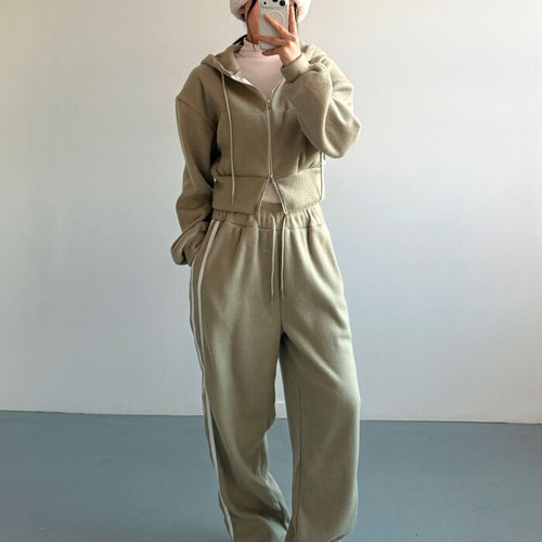 에르디테 / 겨울 트레이닝 세트 보송 기모 후드 집업+밴딩 두줄 와이드 팬츠 3컬러
