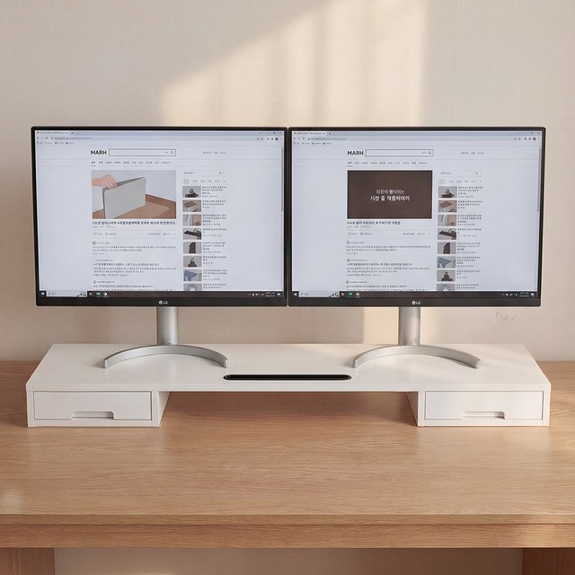 우드웰 스토리 서랍형 듀얼 모니터 받침대 MT01