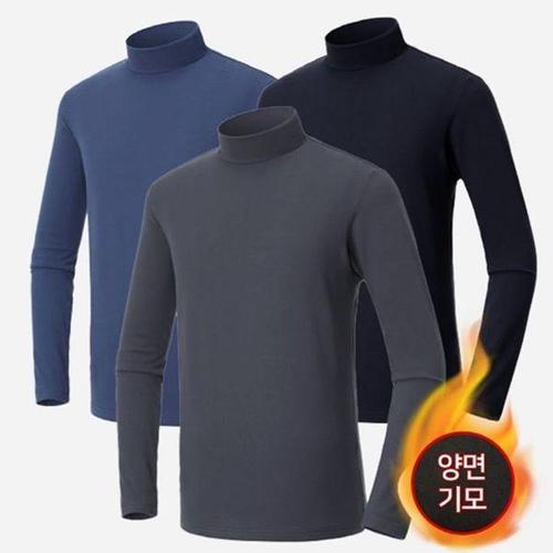 [로쉬] 건조기OK/보풀,물빠짐 NO 부드러운 양면 기모 하프넥/모크넥/반목 긴팔 티셔츠 3장 세트 (운동용/작업용/등산용/보온성)