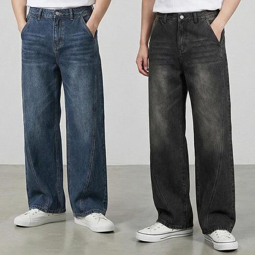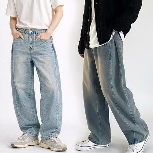[디바옴므]절개 커브드 빈티지 워싱 와이드핏 청바지 데님 팬츠 세미 남성 남자