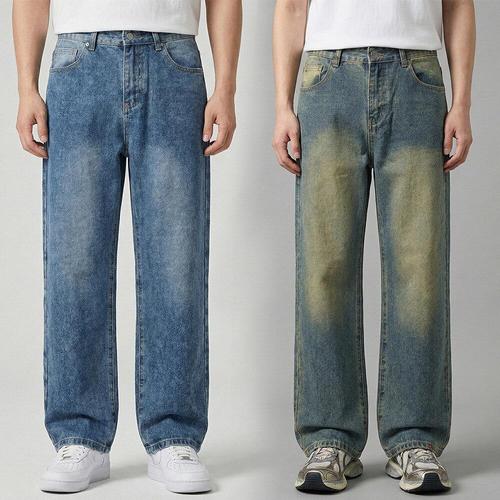 [디바옴므]스트릿 강력 워싱 와이드 청바지 데님 팬츠 빈티지 테이퍼드 세미 남성 남자