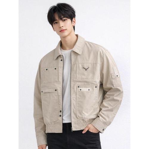 [디바옴므]코튼 리벳 크롭 카라넥 트러커 면 자켓 점퍼 오버핏 남자 남성
