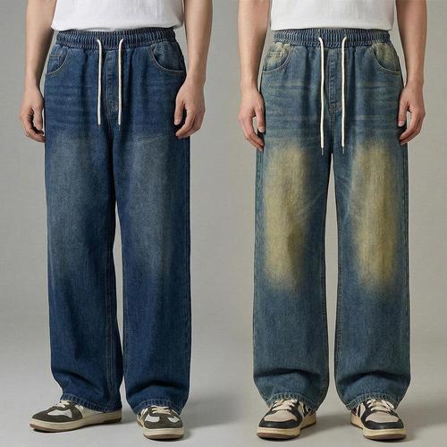 [디바옴므]빈티지 워싱 밴딩 와이드 청바지 데님 팬츠 남성 남자 세미 스트릿