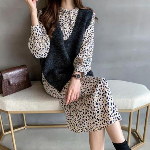 [하프클럽] 블랙 도트패턴 니트 콤보 원피스 SHOCX2941