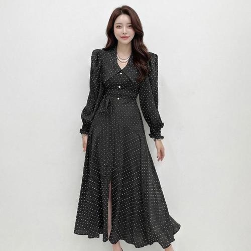 [트리아나]소고 세이브존01 도트 프린트 롱 원피스 AH1PA01_A (S48701370)