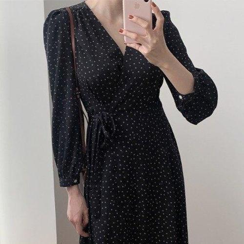 [아리엘스타일]도트패턴 랩스타일 여리핏 글랑트롱원피스