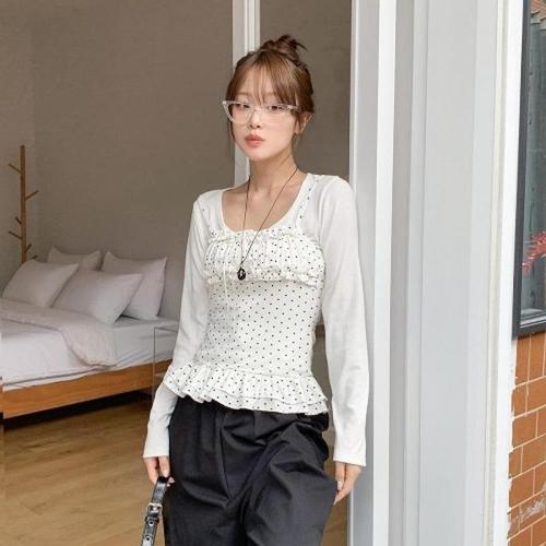 [옷자락]여자 데일리 데이트룩 러블리 레이어드 도트 미니원피스