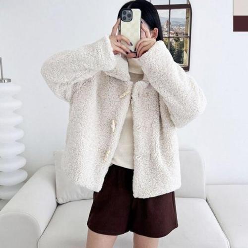 러블리 여성스러운 떡볶이 단추 뽀글이 양털 자켓 (HSJ-WFGAJSF)