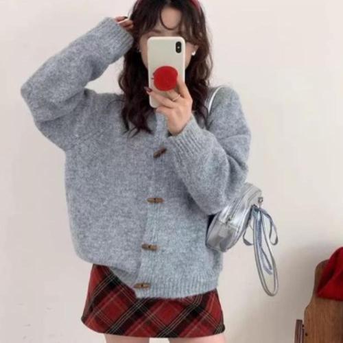 [옷자락]여성 라운드넥 떡볶이 버튼 폴리에스터 니트 가디건