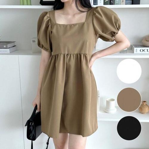 이쁘다요 키작녀 반팔 퍼프 스퀘어 원피스 미니 데이트 스커트 룩 WFLMETE