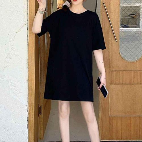 루즈핏 반팔 티셔츠 라운드넥 홈웨어 무지 키작녀원피스 여름티 WFIOBUL