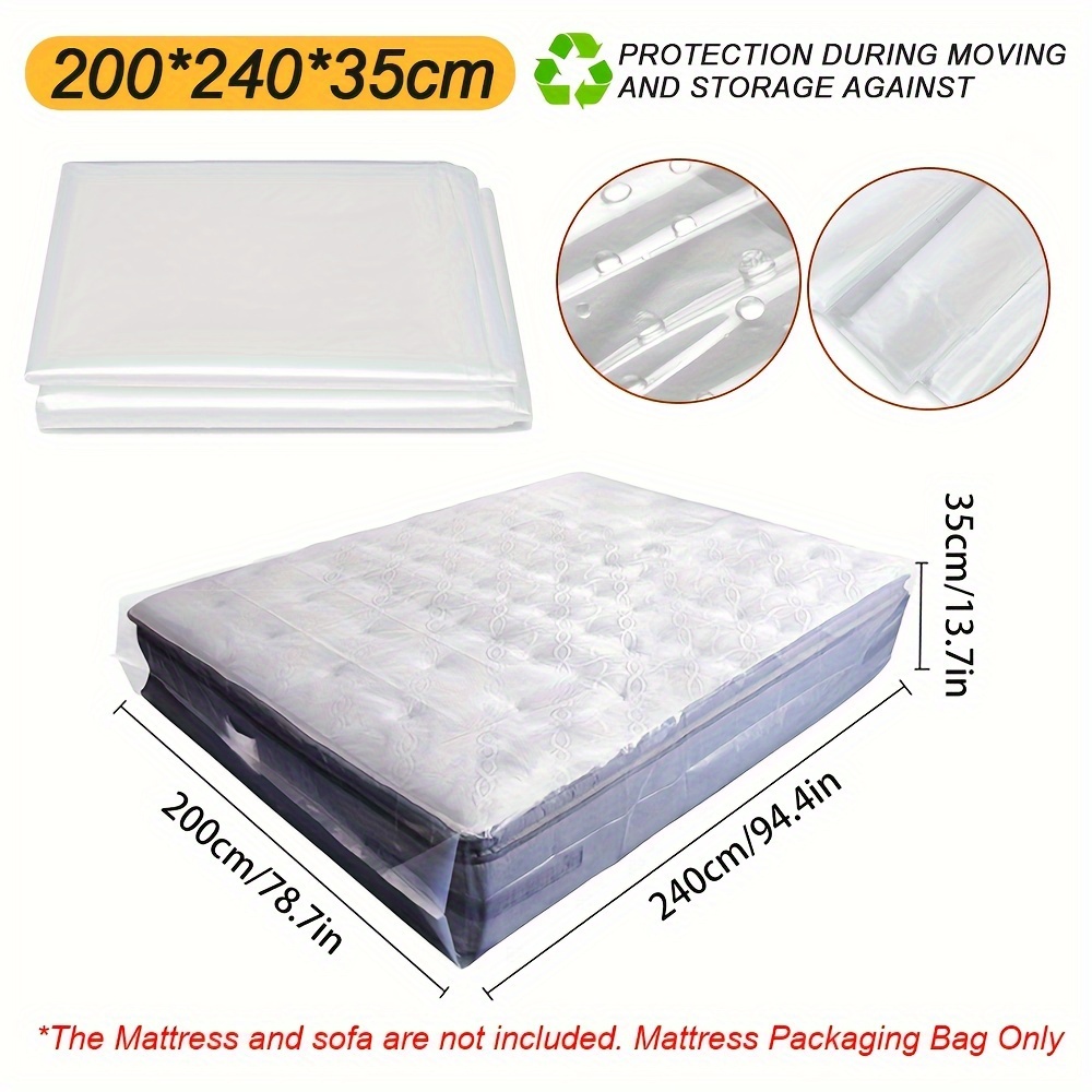 TEMU 이사 및 보관을 위한 튼튼한 비닐 봉투 - 침대, 소파 및 야외 사용을 위한 특대형 PE 매트리스 커버 - 튼튼하고 견고한 포장 재료 - 싱글 팩, 180Cm*240Cm/200Cm*240Cm, 매트리스 커버