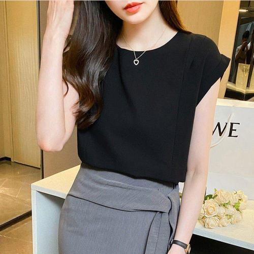 쉬폰 단추 민소매 블라우스_CACU4-WXK900