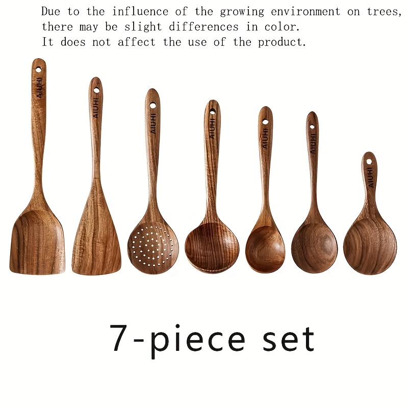 TEMU AIUHI 4개/7개 나무 숟가락, 내구성 있고 스타일리시한 주방용품, 요리와 서빙을 위한 주방 도구