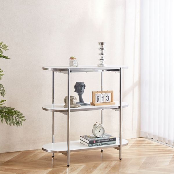 프롬 모던 선반 라운드 수납 타원형 사이드테이블 협탁 3단