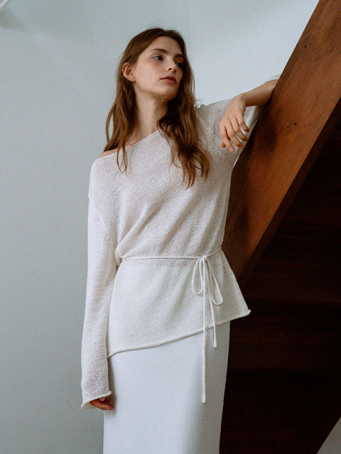 [라메레이] 코튼 린넨 보트넥 니트 탑