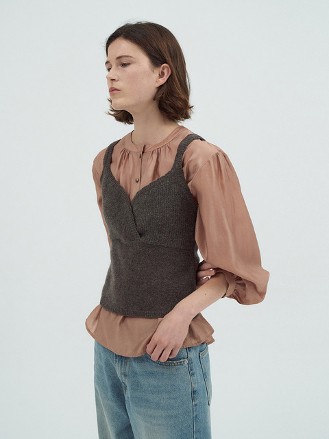 [라메레이] 브이넥 크롭 뷔스티에 니트