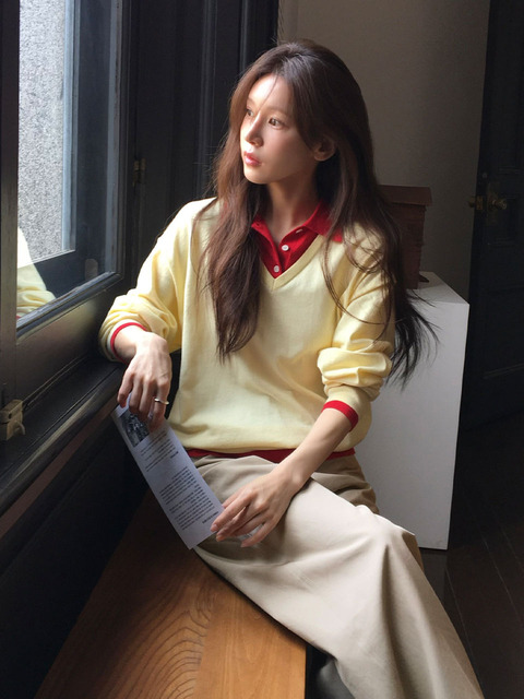 [라메레이] 브이넥 카라 레이어드 니트