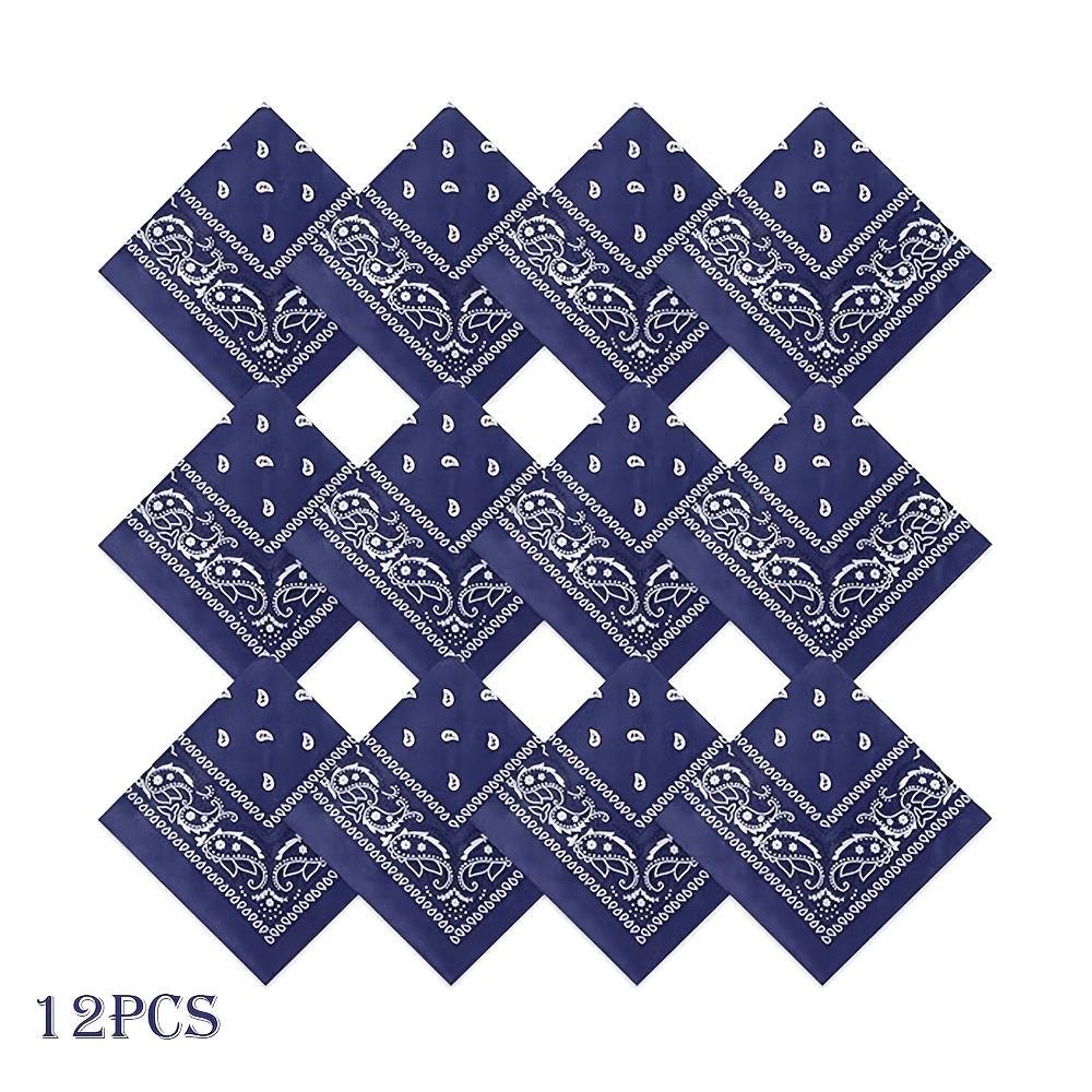 TEMU 여성용 22 X 22인치 대형 페이즐리 반다나 헤어밴드, 스카프, 손수건 12개 세트, 남녀공용, 네이비 블루