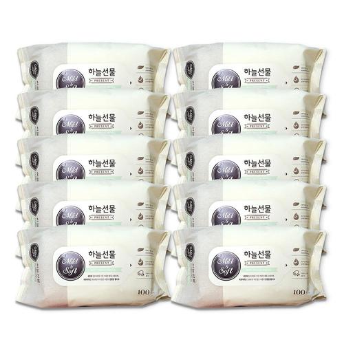 하늘선물물티슈(100매 리필) 10개 대용량물티슈 아기 유아 신생아 물티슈100매