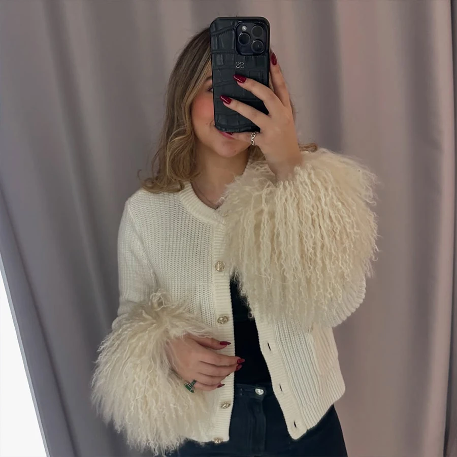 TEMU 여성용 빈티지 감성 인조 모피 코트, 호른 버튼, 루즈핏 짧은 스타일, 싱글 브레스트, 긴 소매, 플레드 디테일 - 캐주얼 아웃팅에 이상적