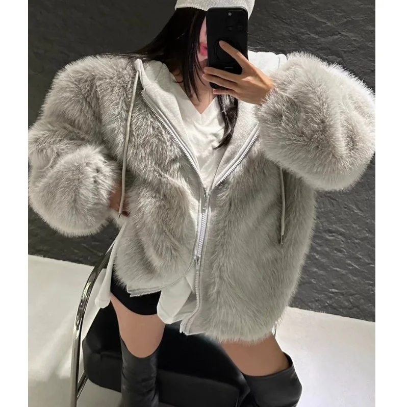 여성용 리얼 밍크 퍼 코트 겨울 파카 봄버 재킷 따뜻한 외투 패션 후드 아우터웨어
