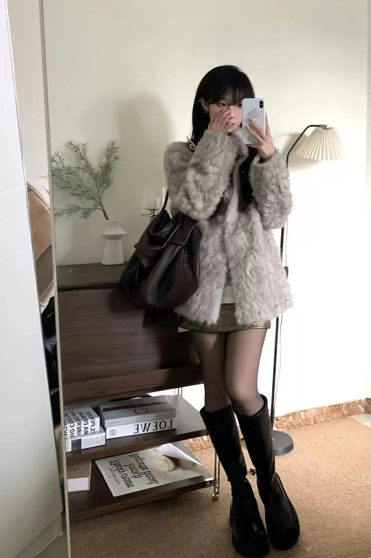 2025년 신상 여성 겨울 플러시 두꺼운 따뜻한 루즈핏 여성 인조 토끼털 코트 루즈핏 라펠 퍼 코트