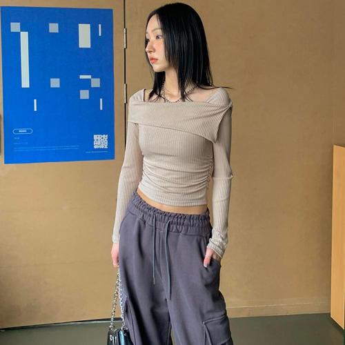 [다잇템]여자 볼드숄더 사이드셔링 라운드 티셔츠