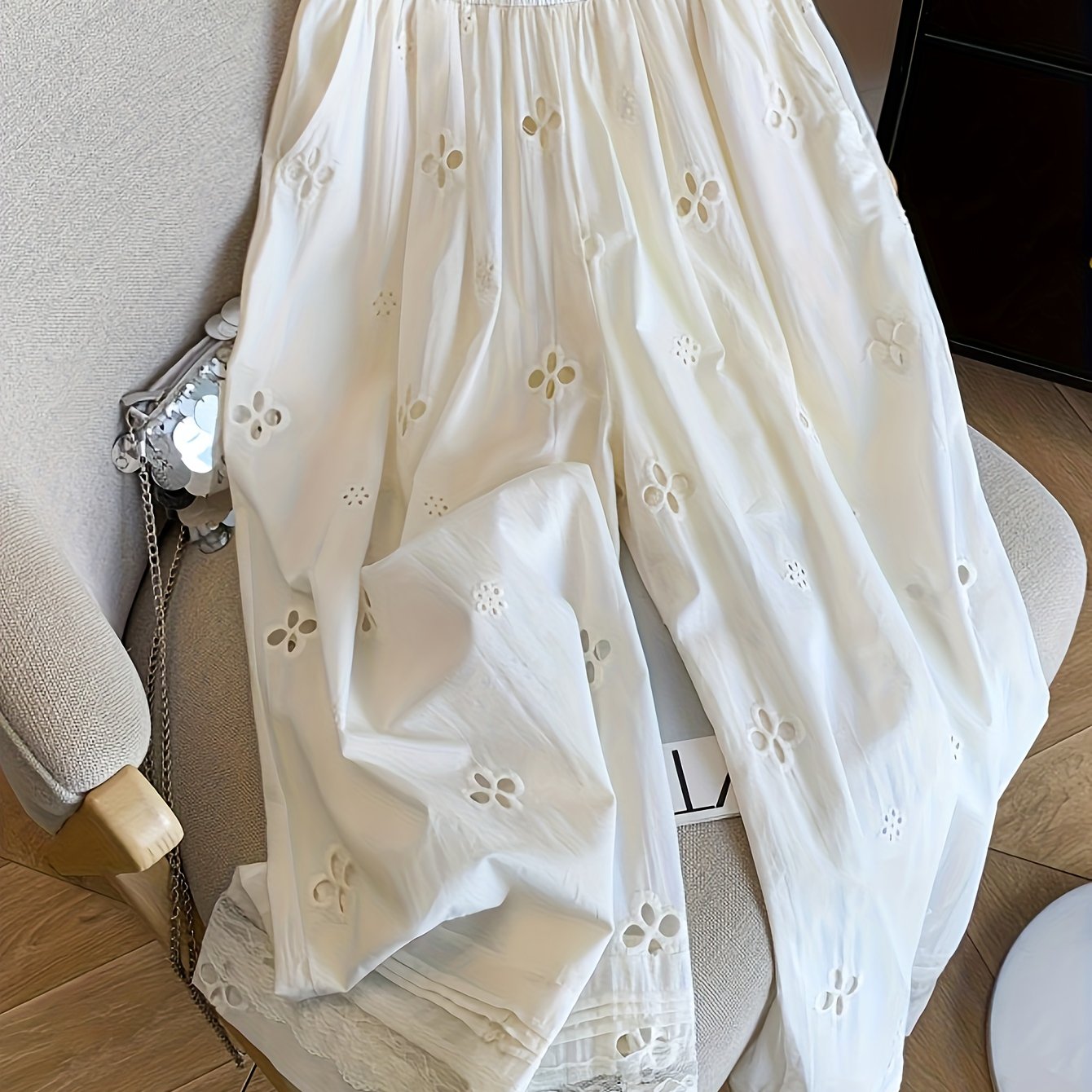 TEMU 신상 투명 자수 안감 사이드 포켓 레이스 스플라이싱 캐주얼 바지, 아웃도어 여행 및 홈 레저 여성 패션 롱 팬츠