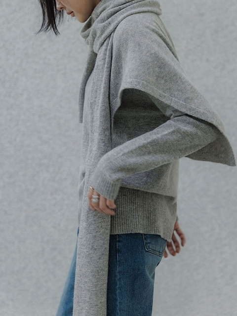 미르바네스 라쿤 블렌드 롱 니트가디건_후드머플러